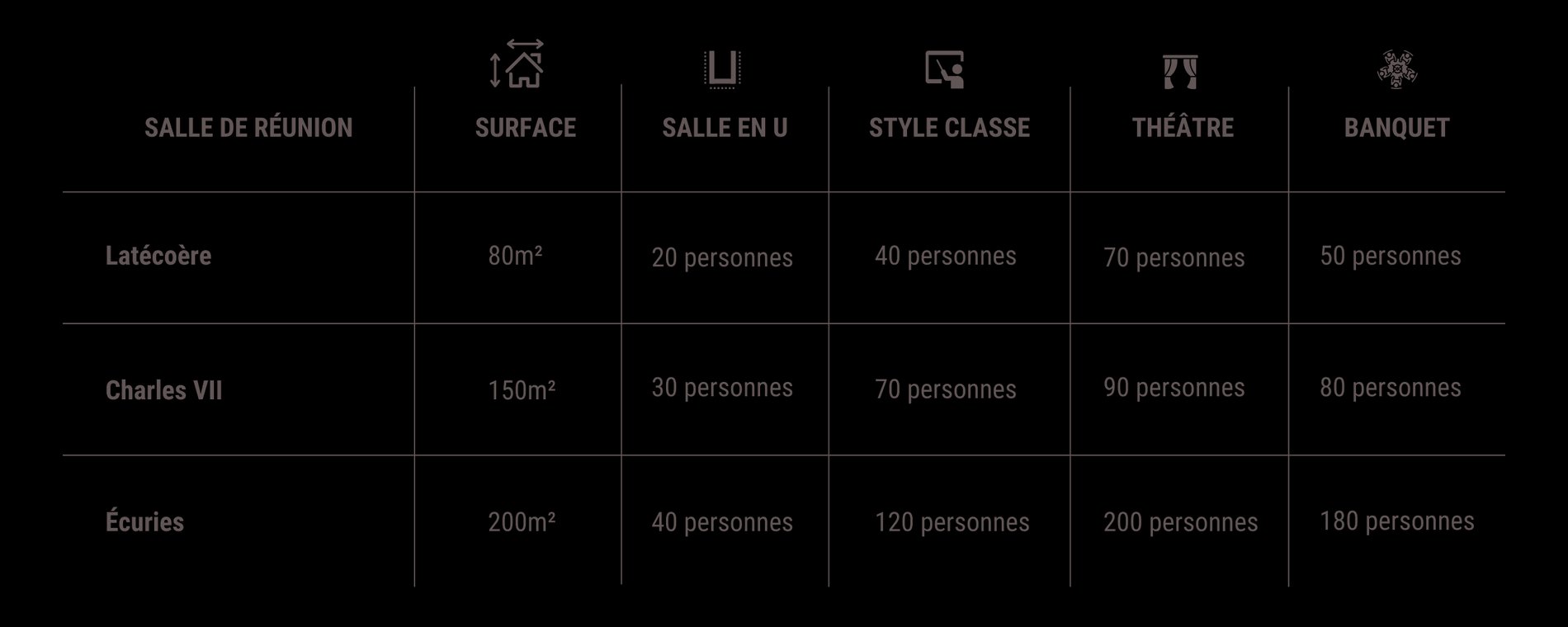 Pour un cadre à la fois chaleureux et raffiné, la Salle Latécoère offre une atmosphère authentique avec son sol en terre cuite et ses poutres apparentes. Son charme intemporel en fait un espace idéal pour accueillir vos réunions professionnelles, alliant élégance et convivialité pour des moments d’échanges et de partage.